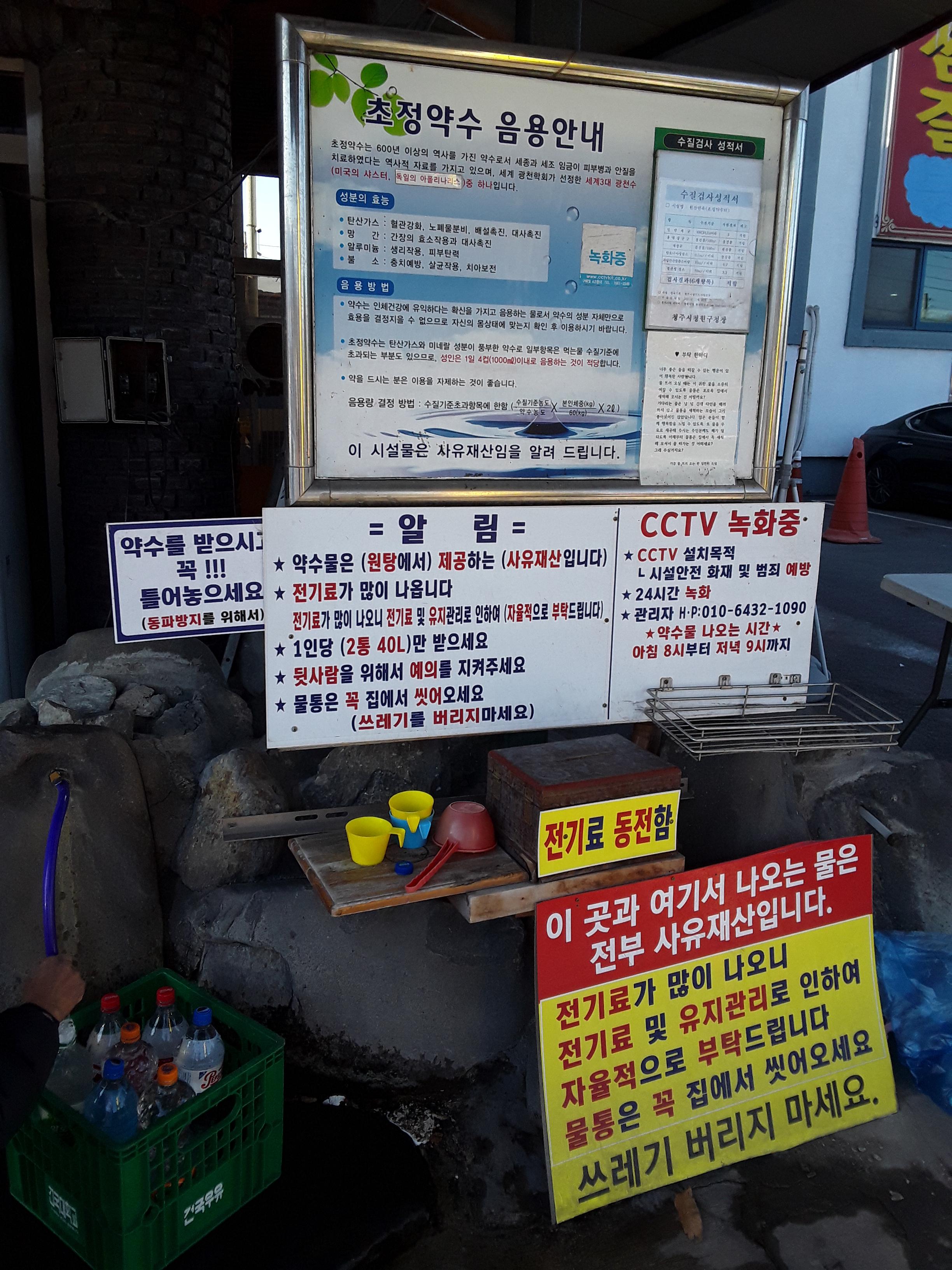 ㅡ초정약수는 탄산가스와 미네랄 성분이 풍부하고 일부 항목은 수질기준에 초과하는 부분도 있어 성인 1일 기준 1000ml로 음용하는 게 좋다고 합니다. 세종대왕의 피부병과 안질 치료했다는 역사적 자료를 가지고 있고 세계 광천 학회가 선정한 세계 3대 광천수의 하나로 선정되었습니다.